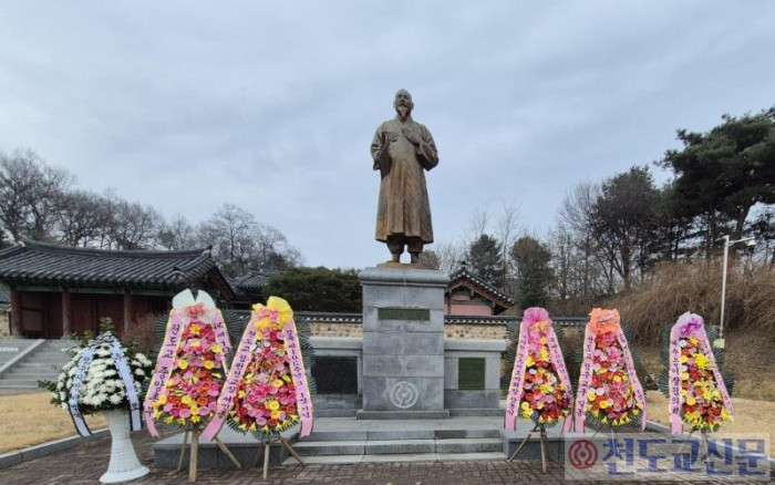 충북 청주시 청원구 의암 손병희 성사 유허지 앞에 세워진 성사의 동상 모습