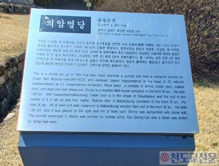 천도교한강교구는 지난 4월 6일(일), 충북 청원군 북이면에 위치한 의암 손병희 성사 생가를 탐방하고, 야외시일식을 봉행했다. 이날 행사에는 한강교구 교인 20여 명이 참석해 성사의 뜻을 기리는 뜻깊은 시간을 가졌다.